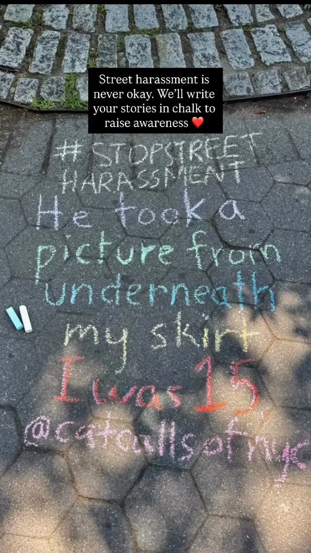 In 2016, she created the popular initiative Catcalls of NYC, a platform that shares verbatim stories of street harassment with colorful chalk art. She founded Chalk Back, an international youth-led movement consisting of 1000 activists on 6 continents. Her work with Catcall of NYC and Chalk Back has been featured in the New York Times, BBC, CCN, NBC, and others.